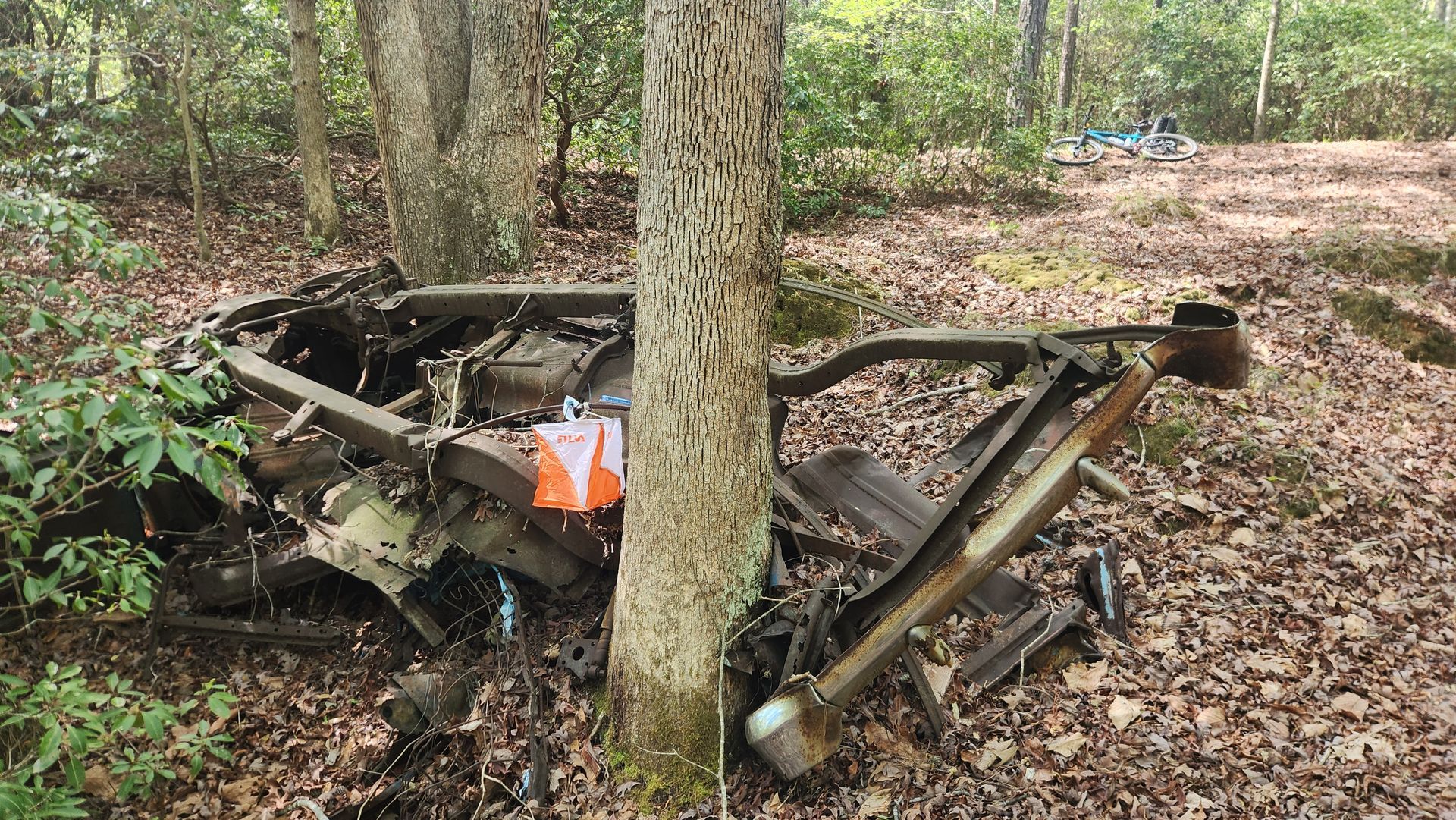 I set T5 which is only a CP in the 4-hour race, its an old abandoned car in the woods. I’ve actually never seen it before today it was a spot Justin knew well from a previous CVOC event/scouting trip, its amazing, and its been there for quite some time because a tree is growing up through the engine block.