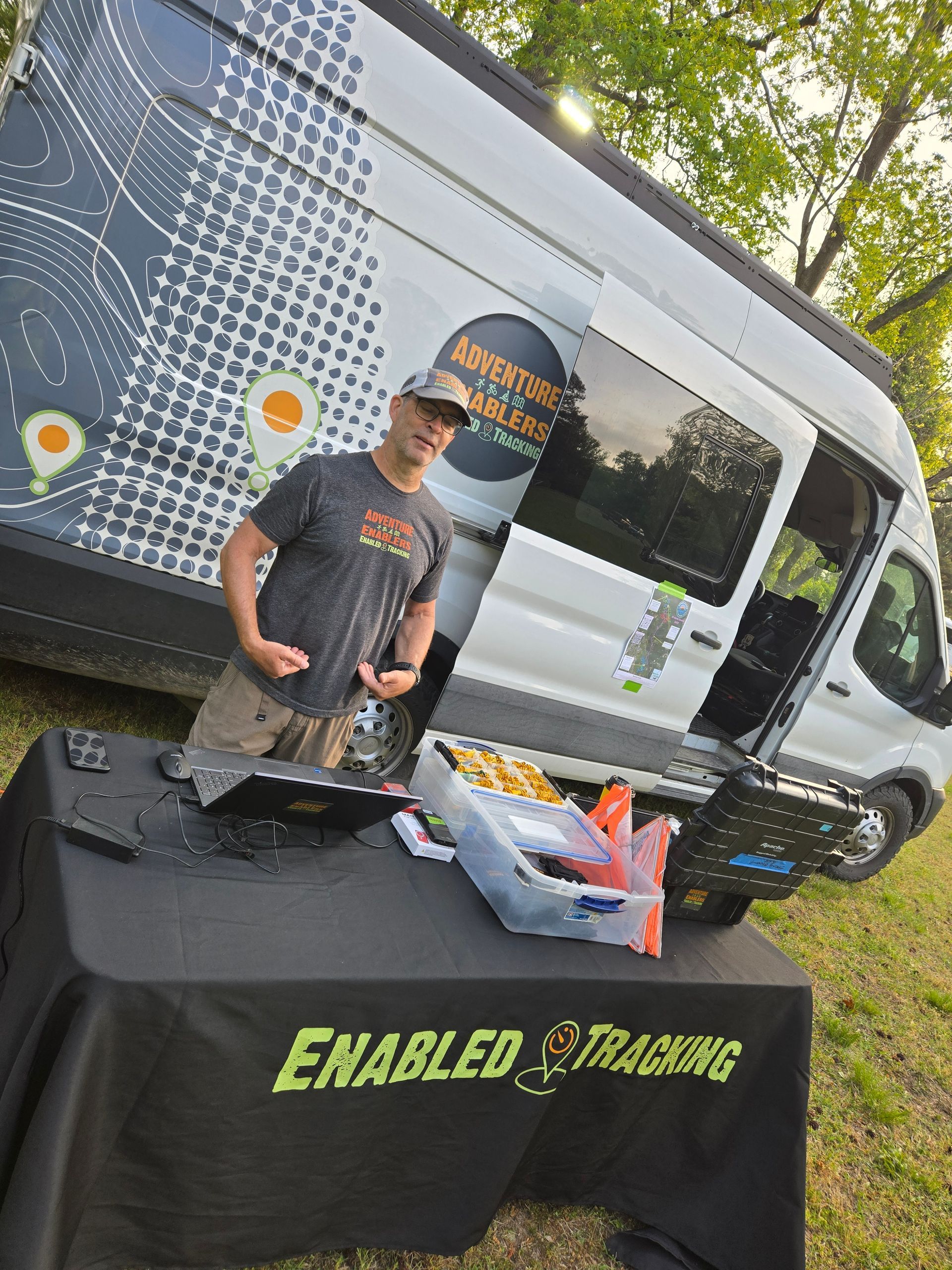 So with them all teams in the park, while we’ve still got things to do, this is the most relief moment of a race that involves multiple locations for a race director and volunteers. At this point all that’s left is for teams to come into the picnic shelter location to either transition from bike to the final out-n-back trek leg, or to come in from the final trek and finish the race. At this point we’re cheering teams in, taking their pictures at the finish line, and also watching the TV screen with LIVE-Tracking as the overall Top 10 really starts to flesh out as we’ve got roughly 7-8 potential teams/solos who can still clear the course after clearing through Leg 6.