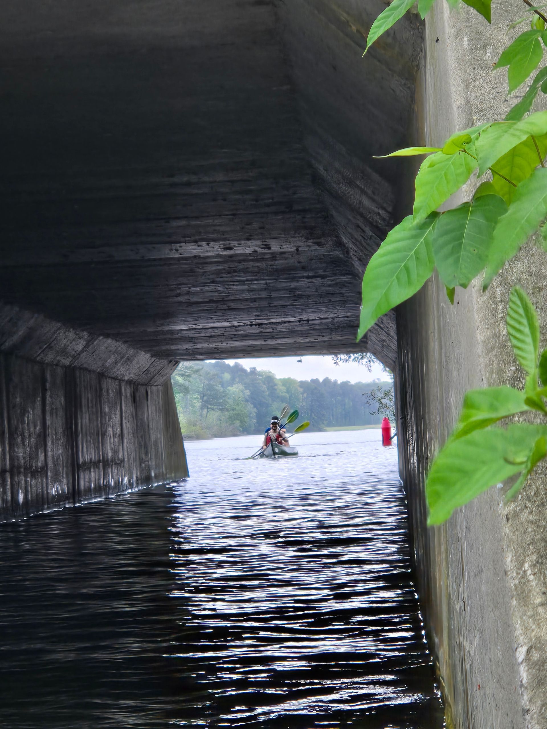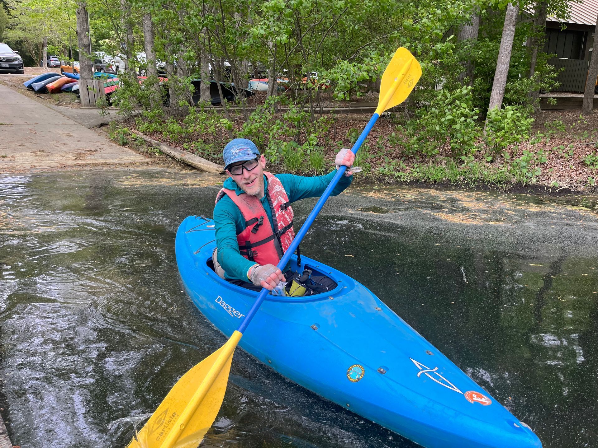 So the last 2 solos hit the water just after noon so Dawn/Justin/Parker can now close down Croaker Landing TA, Parker just paddles his safety kayak the rest of the way to Taskinas and gets out there, Justin/Dawn and Jesse heads over there to load all the unused PFDs and paddles in a car and drive them over to YRSP Taskinas Creek launch, and then one of the most masterful ingenuity moments, I hear via text that Justin is getting the extra 2 canoes to Taskinas by trying them in a train to his personal kayak and paddling a train of canoes down the river... amazing, and thankful Dawn got pictures/video.