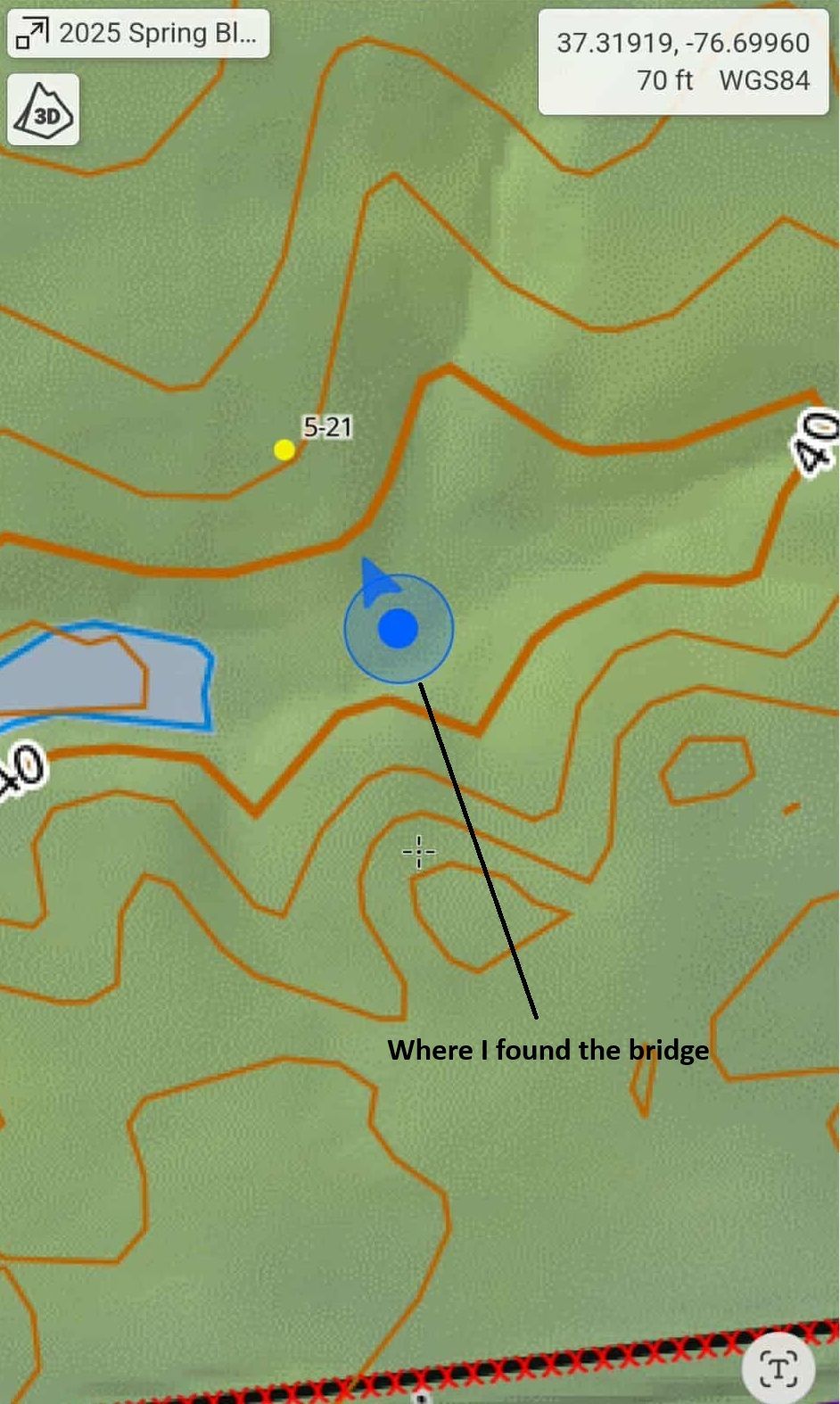 I’d say the first 6 of BROR’s adventure races I set 100% of the checkpoints, partially via lack of volunteers, but also because of my OCD nature and trust/quality concerns. Someone saying they’ll help you set CPs sounds nice until you remember that having a CP set in the wrong place is the absolute worst thing you can have happen for an adventure race. As I’ve raced with more people and more people have volunteered with me over the years I’ve gained some very good teammates who I trust with setting now. One of those who came in for this year’s Spring Bloom is Justin Mann. The previous 8 BROR races were 100% designed/scouted by me, but for Bloom 2025, Justin helped me plan and scout much of this year’s race as he lives closer to the area, and he also scouts and sets orienteering courses for CVOC, which meant he fully understands the mission/process of course design/setting, he was absolutely the best person to work with on these aspects (more on this later).