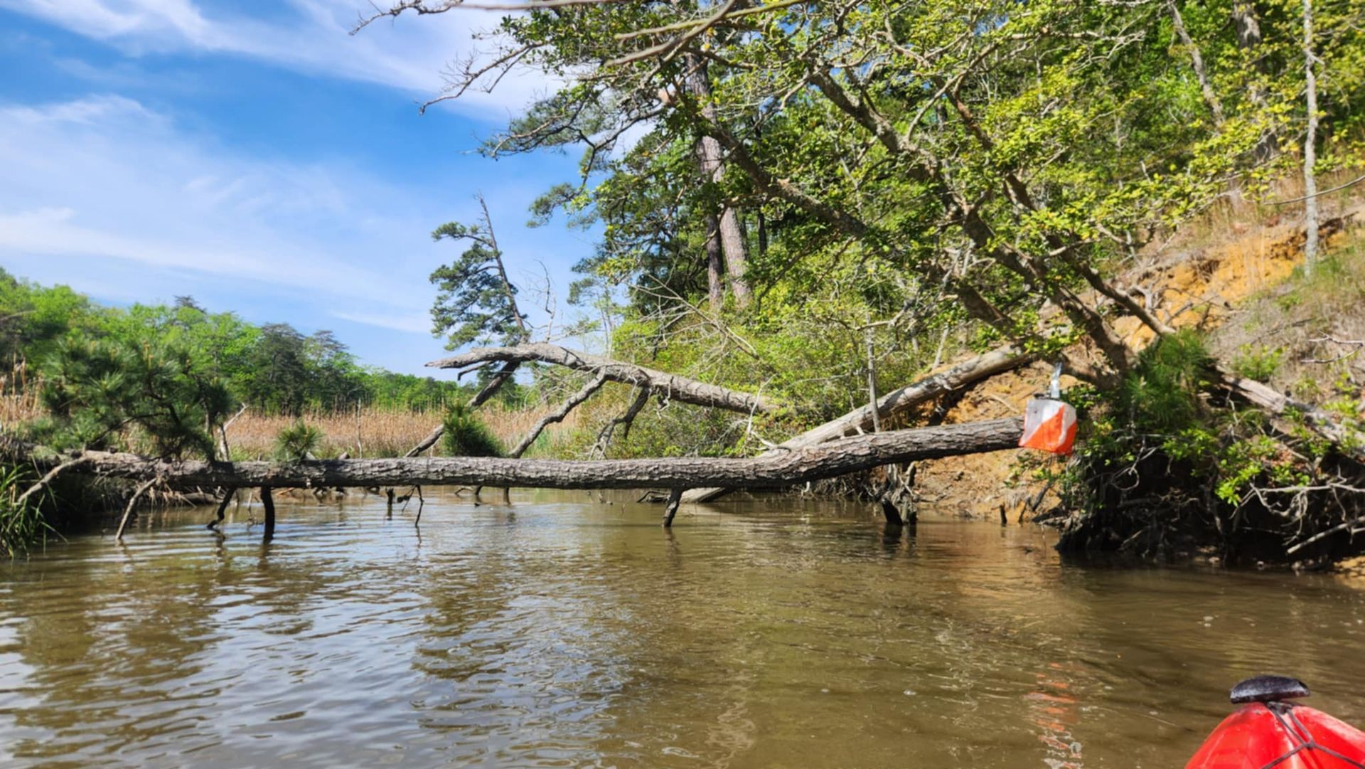 At this point I notice we have a team well off course on the Leg 2 paddle. For leg 2, you had to paddle 1 mile down the York River but then turn into and paddle Taskinas Creek. I say its a fairly obvious inlet from the river, but as this team was running a little behind, they didn’t have a trail of boats to follow in and also were likely in a “we gotta move!” heads down mode. As an RD I don’t mind teams being lost, but I do keep an eye on things where I may need to rescue someone or when private property issues are involved. The basic potential issue here is the team managed to paddle past the entrance to Taskinas Creek as the tide was moving out, meaning fixing their error required paddling against a strong tide pull, and if they went too far without fixing the error they would have gotten to the shores of the Camp Peary military base… do I go send someone to stop them before we have an issue with the base? Thankfully Betsy and Dinah figured out their mistake and turned around, they paddled a full 1.5 miles past the entrance to Taskinas Creek, 3 bonus miles of paddling as we say in AR :) this was not the end of their very eventful day of racing, but thankfully they gutted it all out and still got 27 CPs on the day.