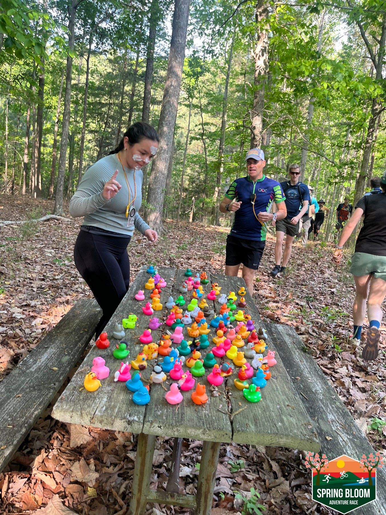 This race start goes perfectly and everyone, especially the 40+ kids are having the times of their lives and love that they get to keep the rubber ducks, I genuinely don’t know that I’ve seen this many smiles before, and all the park rangers are there and they absolutely are loving watching it too. Parker got an amazing video of a herd of adventure racers running toward him so they can all get their rubber ducks. So what is funny though is when people return to show us their ducks some ask “what do I do with it” and we just yell “keep it, its yours” and people are often surprised, happy “That’s awesome” and it becomes a part of their race. But there’s always 1-2 very specific racers who have done our races over the years who look like the grumpiest guys in the world, hah. Every time we’ve come up with some fun/silly prologue challenge, they take it seriously and are burdened by the fun. This race its one of our regular soloists, he returns and the following sequence happens: