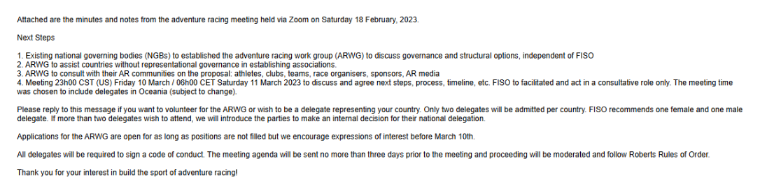 So what happened? One very good thing came out of all this. Adventure racers and race directors got together, in a very public fashion at the end of 2023 and discussed and then voted in a very public forum with global representation to officially form the